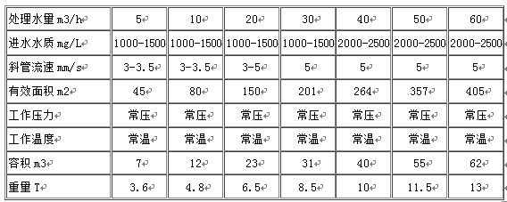 該斜板沉淀器沉淀污水固體、懸浮物、污水經(jīng)加混凝反應后由設備上端進水口進入設備,經(jīng)錐形反應池混凝形成礬花,逐漸沉降至設備污泥斗中(設備可連續(xù)、間斷排泥)形成排泥,在反應池中污泥沉降,清水上升至斜板(管)中,并進一步沉降污水中的顆粒,清水上升至溢流槽后出水。